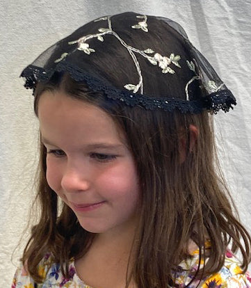 Chapel Caps --Is there anything more handy than a chapel cap or small veil in your purse? Perfect to quietly entertain 6 mo. olds (mine used to stack them on their heads during Mass), perfect for that quick visit to the Blessed Sacrament that was not originally planned, perfect for catching the noon daily Mass. And perfect for little girls who are still too young yet for a full-sized veil. I have 2 in my purse at all times, unless one is on my head.