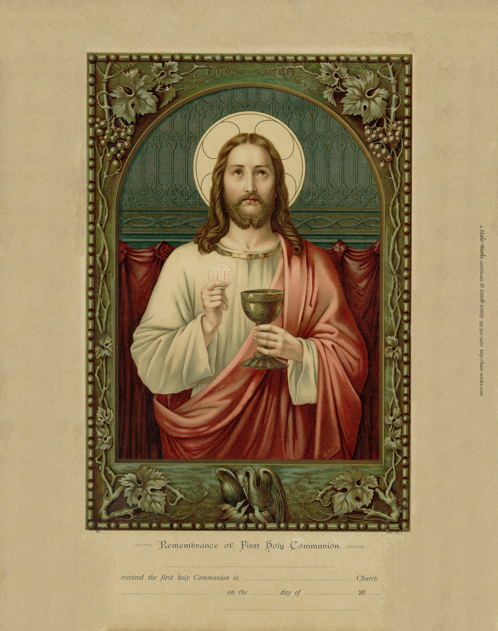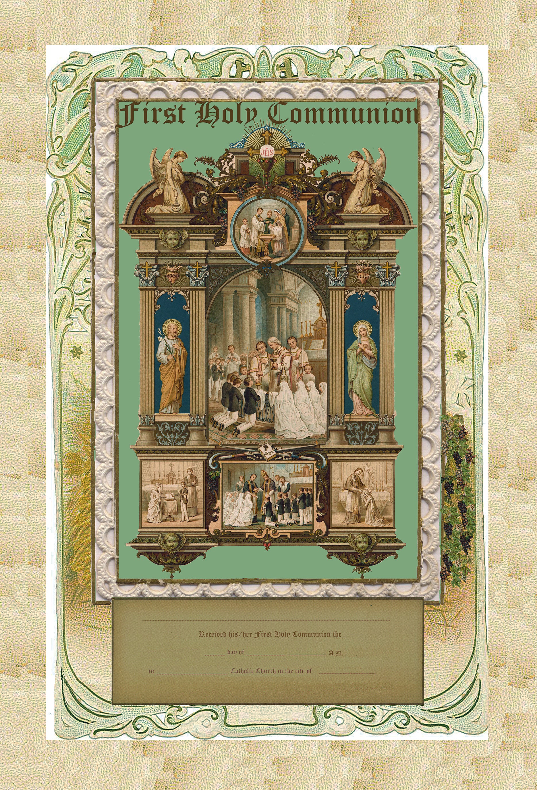 These First Holy Communion Certificates are restored versions of antique certificates that were in use during the early 1900's.